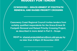 CCW000352 - Grace/Ernest Street Footpath Renewal Published on 20 November 2025 Cassowary Coast Regional Council invites tenders from suitably qualified respondents for the Grace-Ernest St Footpath Renewal and Raised Priority Crossing Project, as described in more detail in Part 5 – Scope. Tagged as: , Announcements, Business & Economy, Improvement Works, Public Notices